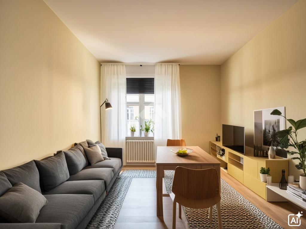L'immobile è composto da un soggiorno accogliente, un cucinotto funzionale, due camere da letto di generose dimensioni e un servizio finestrato.