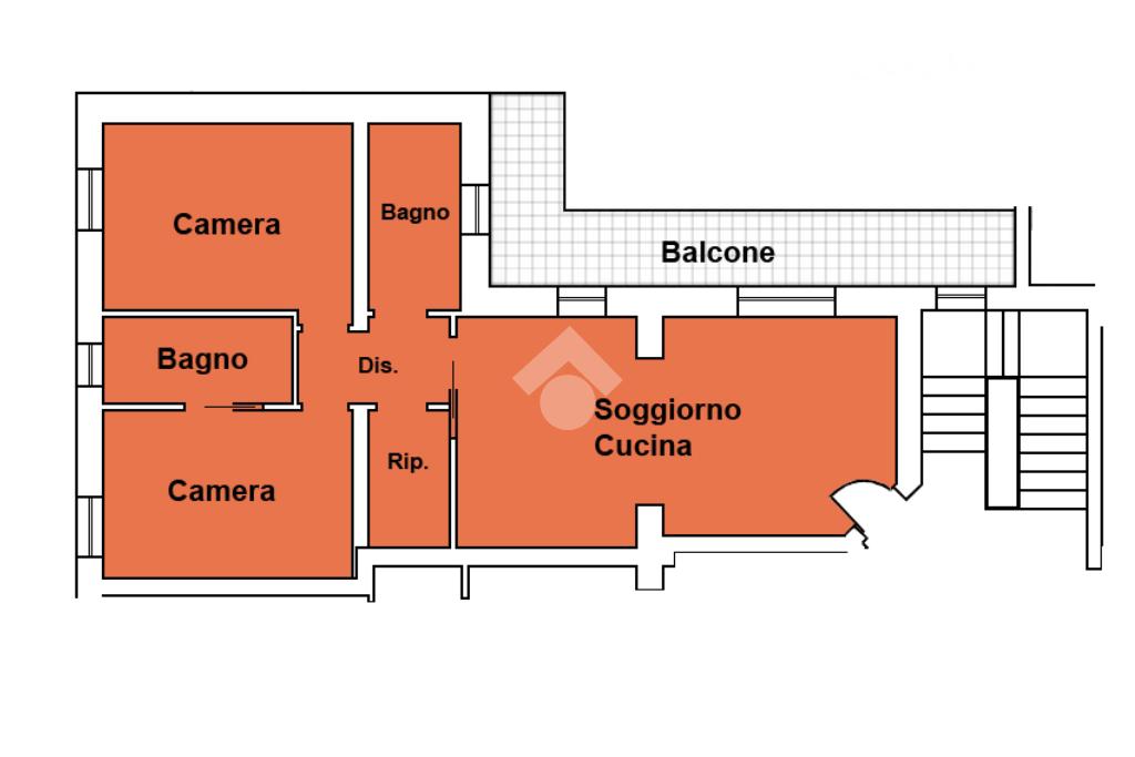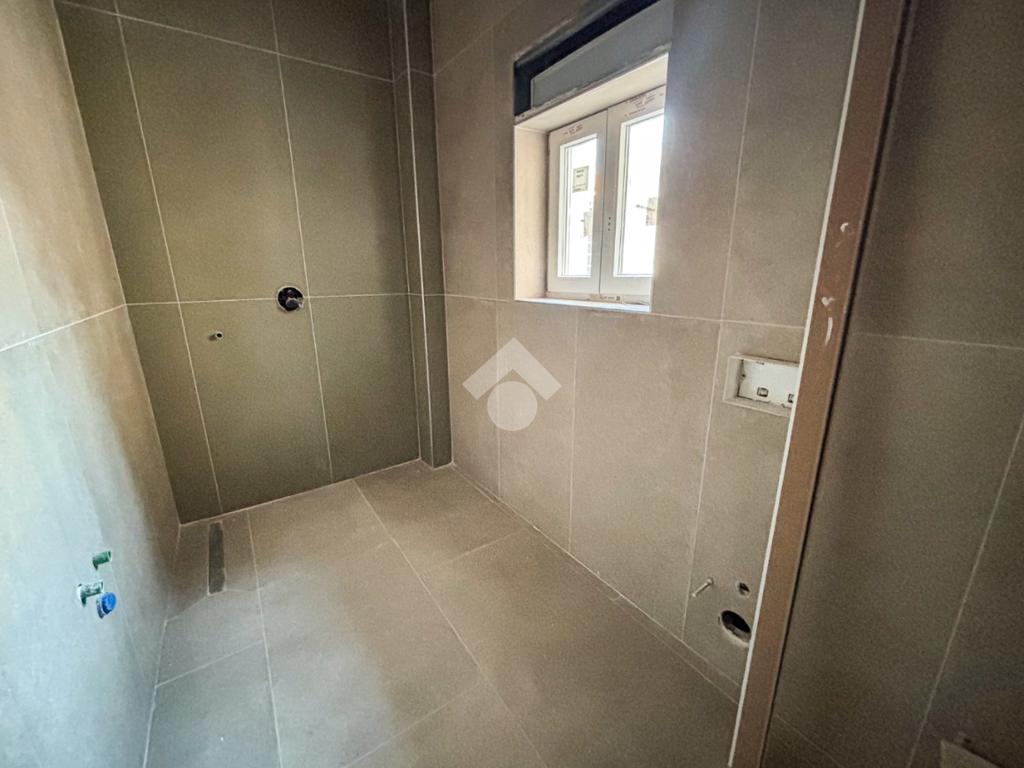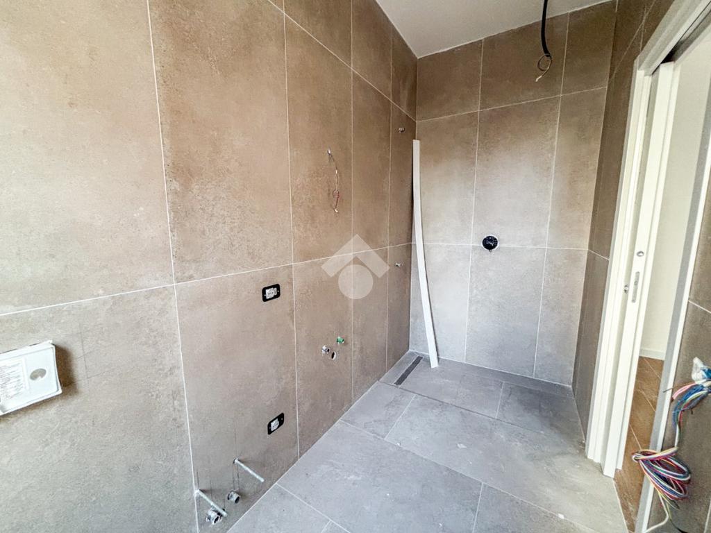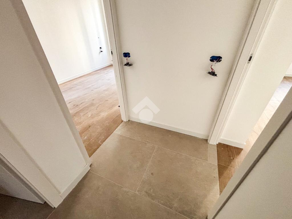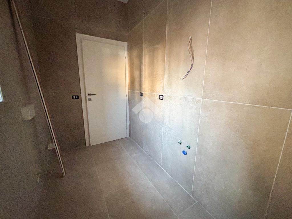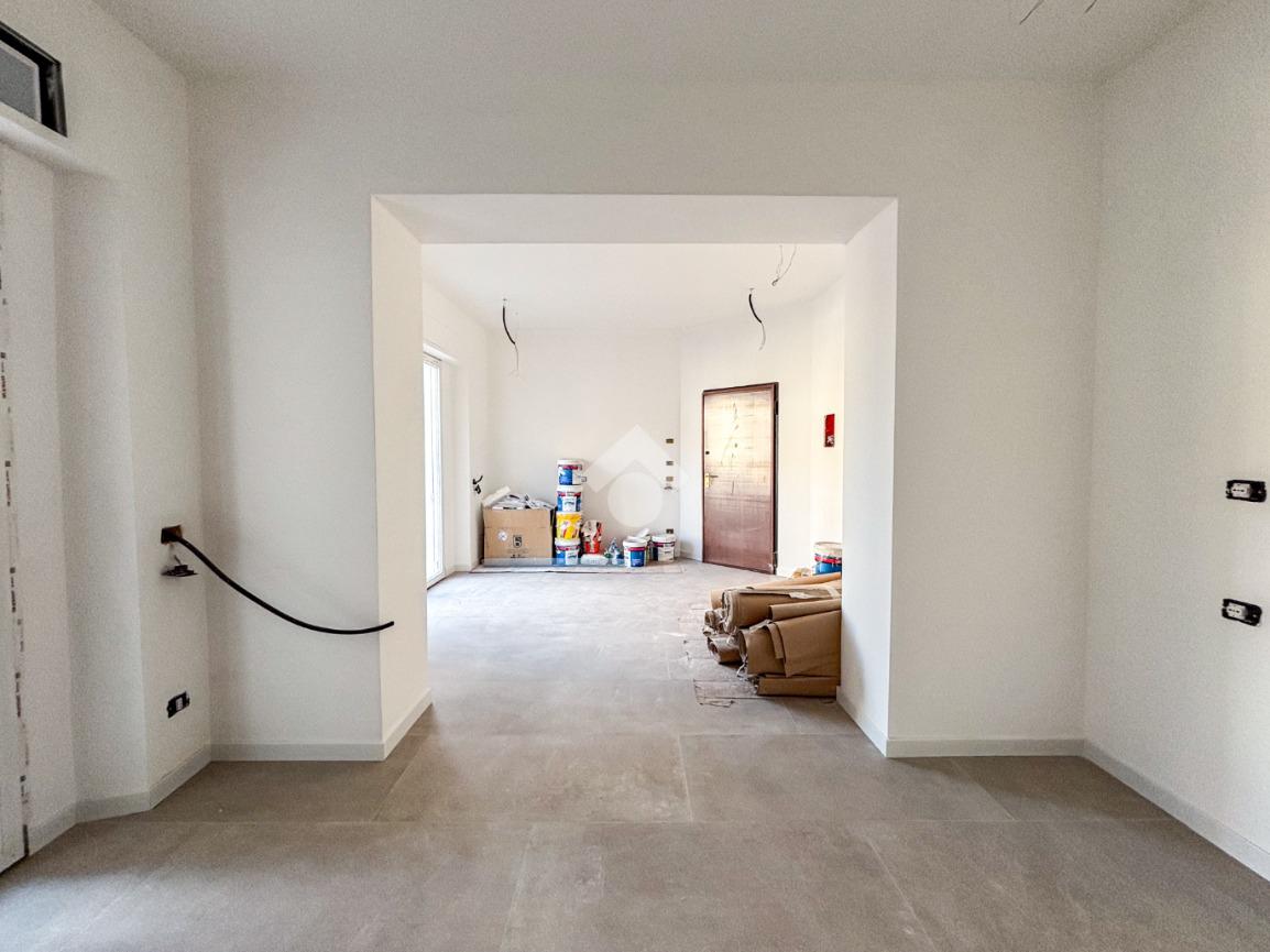 Entrando nell’appartamento si viene accolti direttamente dalla zona giorno con cucina a vista, un ambiente moderno e luminoso che, grazie alla porta finestra, conduce al balcone angolare, ideale per momenti di relax all’aperto. Proseguendo, sulla sinistra, troviamo un comodo ripostiglio e una prima camera da letto dotata di bagno en suite finestrato con doccia; sulla destra si sviluppano il secondo bagno, anch’esso finestrato e con doccia, e la seconda camera da letto.