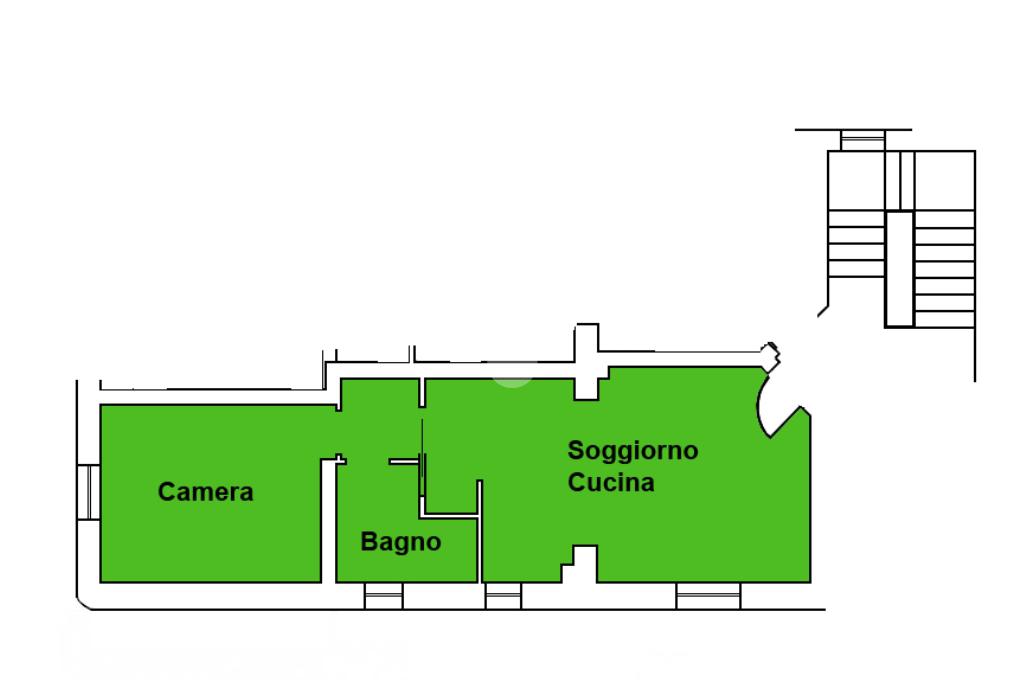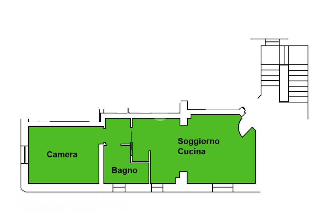 Varcando l’ingresso dell’appartamento si accede direttamente alla zona giorno con cucina a vista, uno spazio funzionale e ben distribuito. Dal disimpegno, sulla destra, troviamo il bagno finestrato completo di doccia, mentre frontalmente si sviluppa la camera da letto.