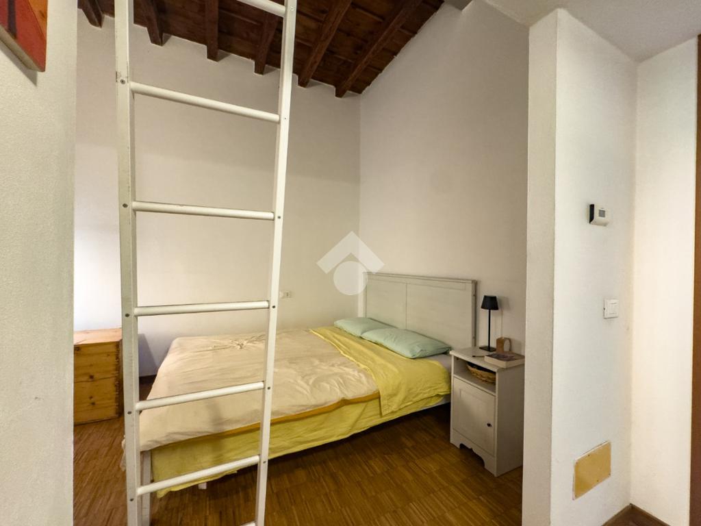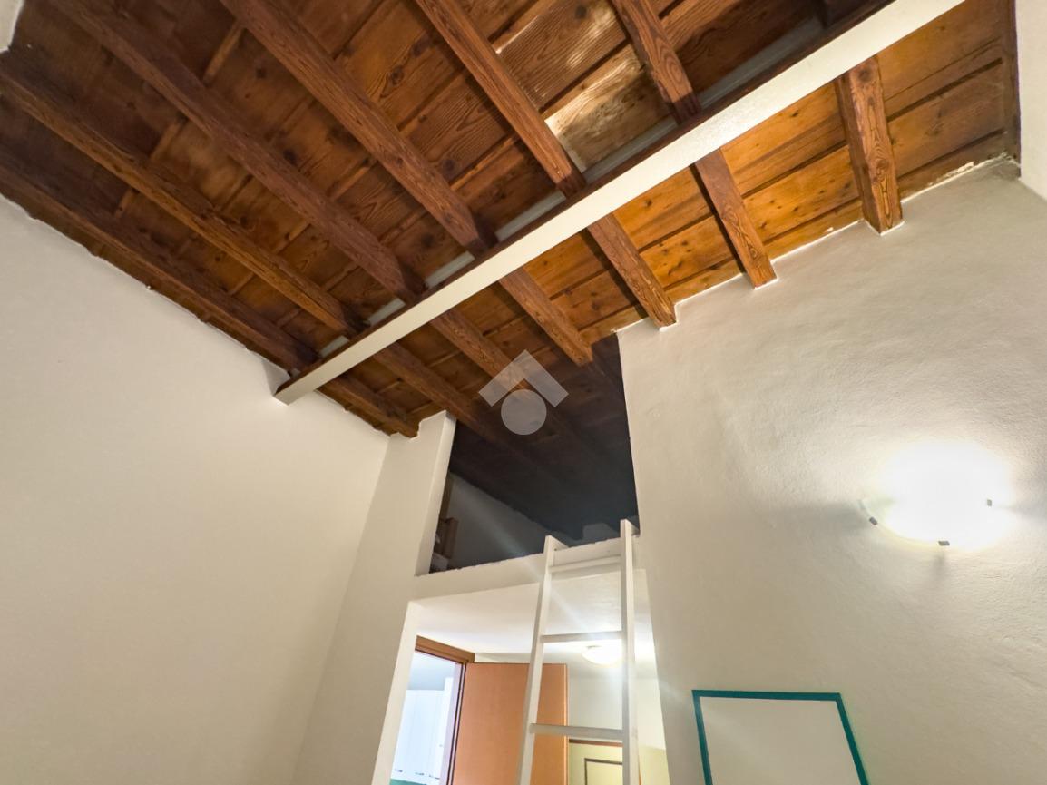 Di fronte si sviluppa la zona notte, composta da una camera da letto valorizzata da un pratico soppalco che aggiunge versatilità all’ambiente, ideale come spazio contenitivo o area aggiuntiva. Completa il piano un bagno finestrato con doccia, comodo e ben rifinito.
