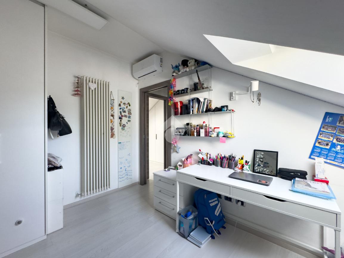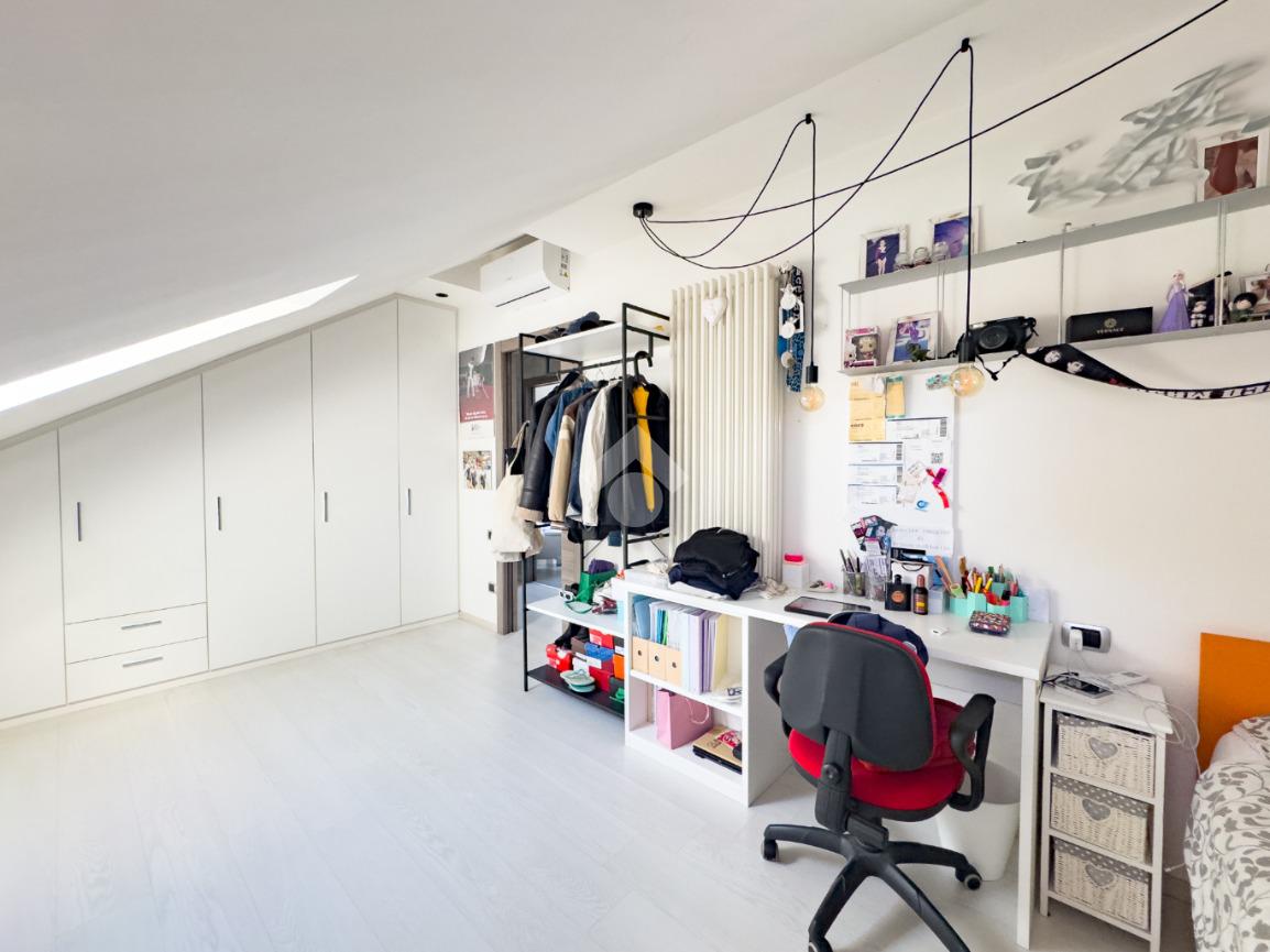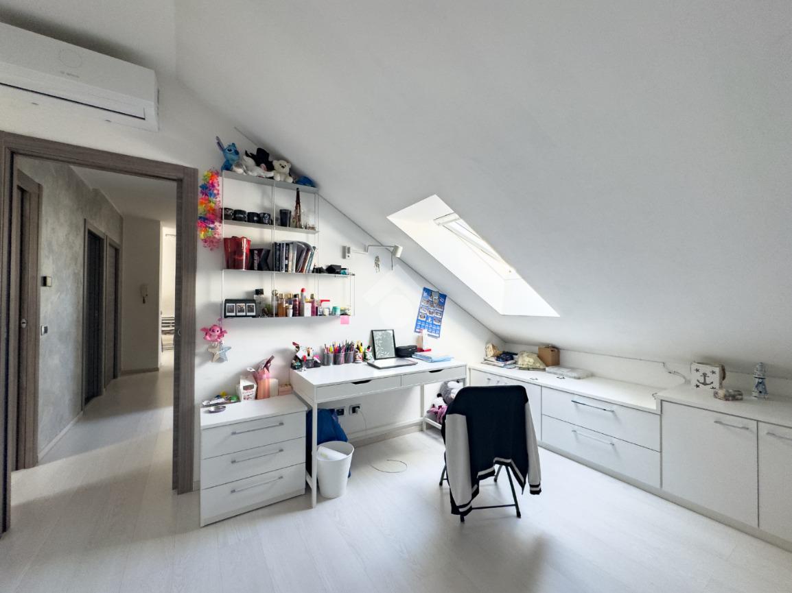 La scala interna conduce al secondo ed ultimo piano, di pari metratura rispetto al piano sottostante. Il sottotetto, ristrutturato nel 2015, è costituito da tre ulteriori ampi ambienti, di cui due stanze studio e un locale hobby, un comodo ripostiglio, ed infine un ambio bagno-lavanderia.