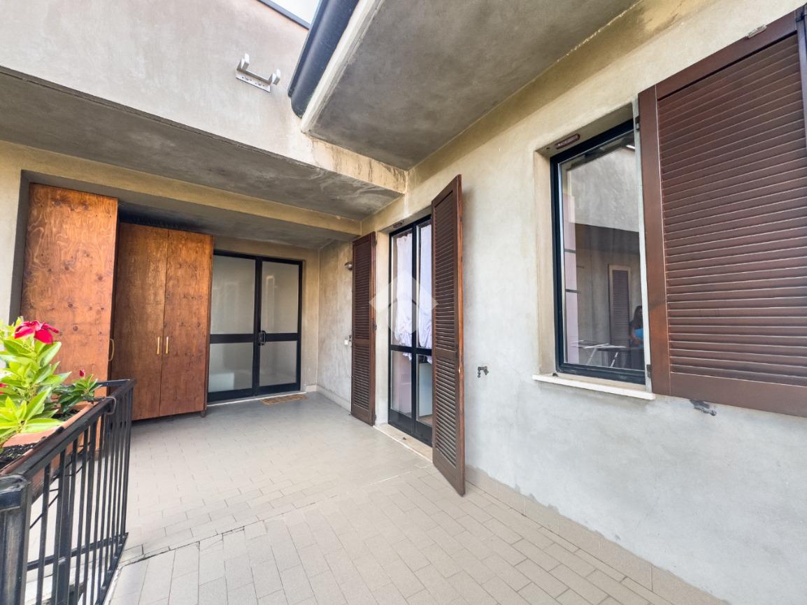 Al primo piano, l'immobile dispone di un ingresso nella zona giorno, composta da una cucina abitabile, un luminoso soggiorno doppio, due camere da letto di cui una matrimoniale e una doppia, doppi servizi e un balcone e un terrazzo che garantiscono luminosità e sfogo esterno.